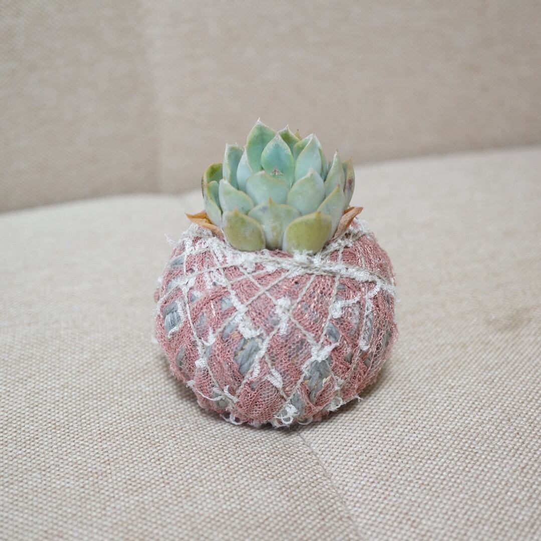 植物にカラフルな色の糸を合わせた新感覚のテーブルグリーンのインテリア