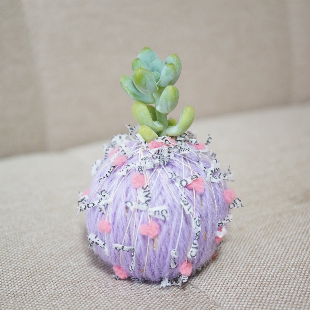 植物にカラフルな色の糸を合わせた新感覚のテーブルグリーンのインテリア