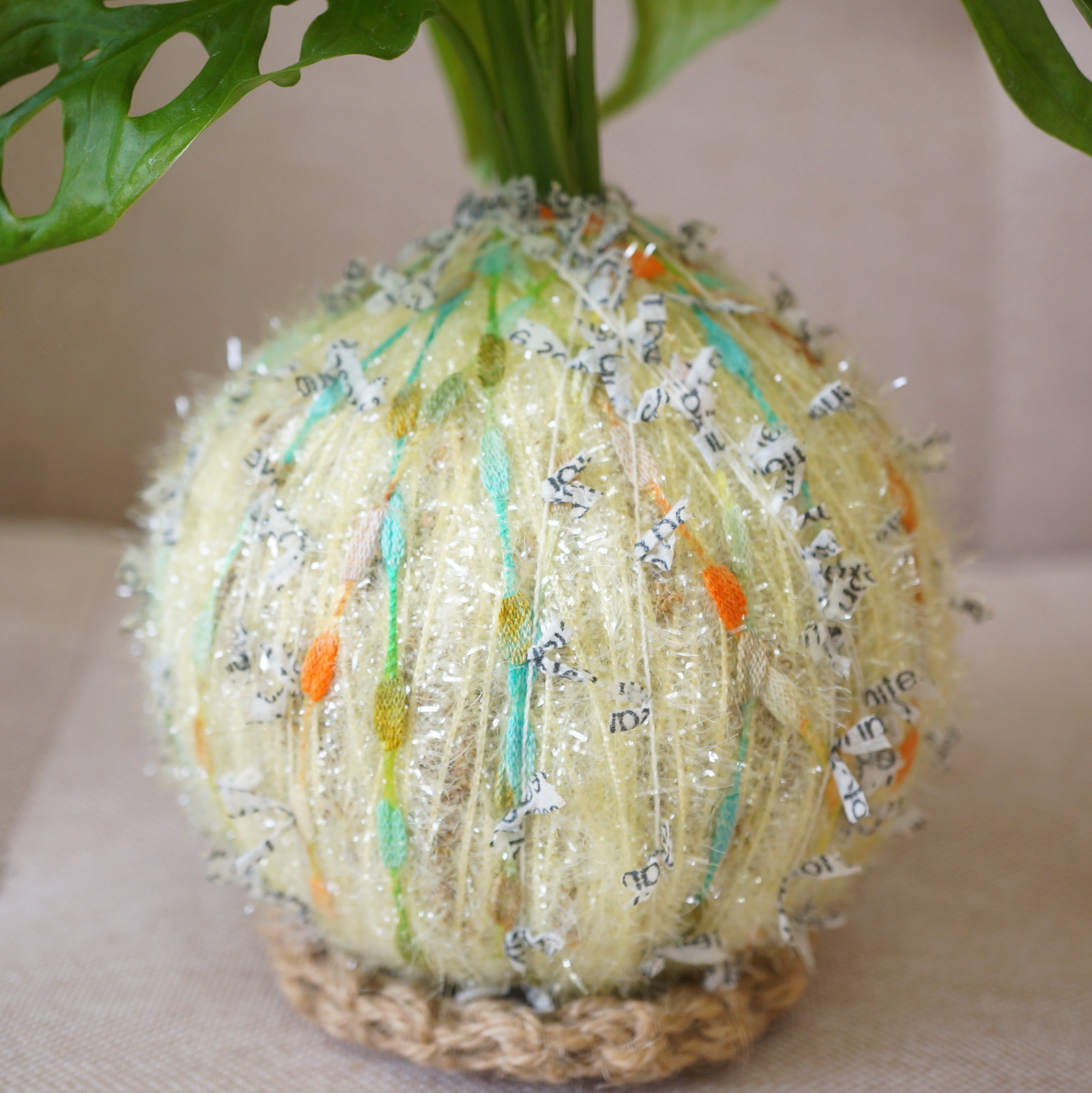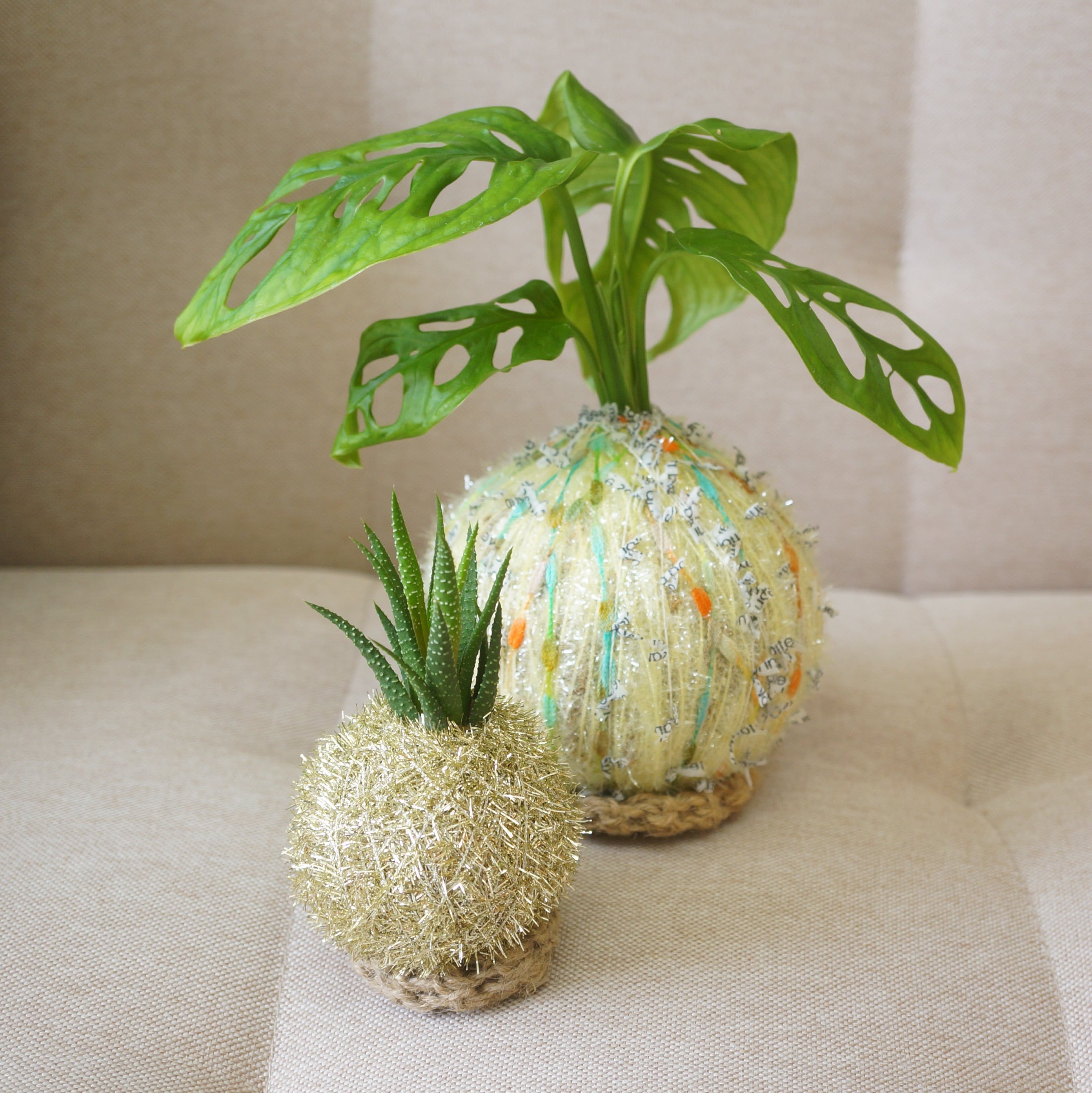 植物にカラフルな色の糸を合わせた新感覚のテーブルグリーンのインテリア
